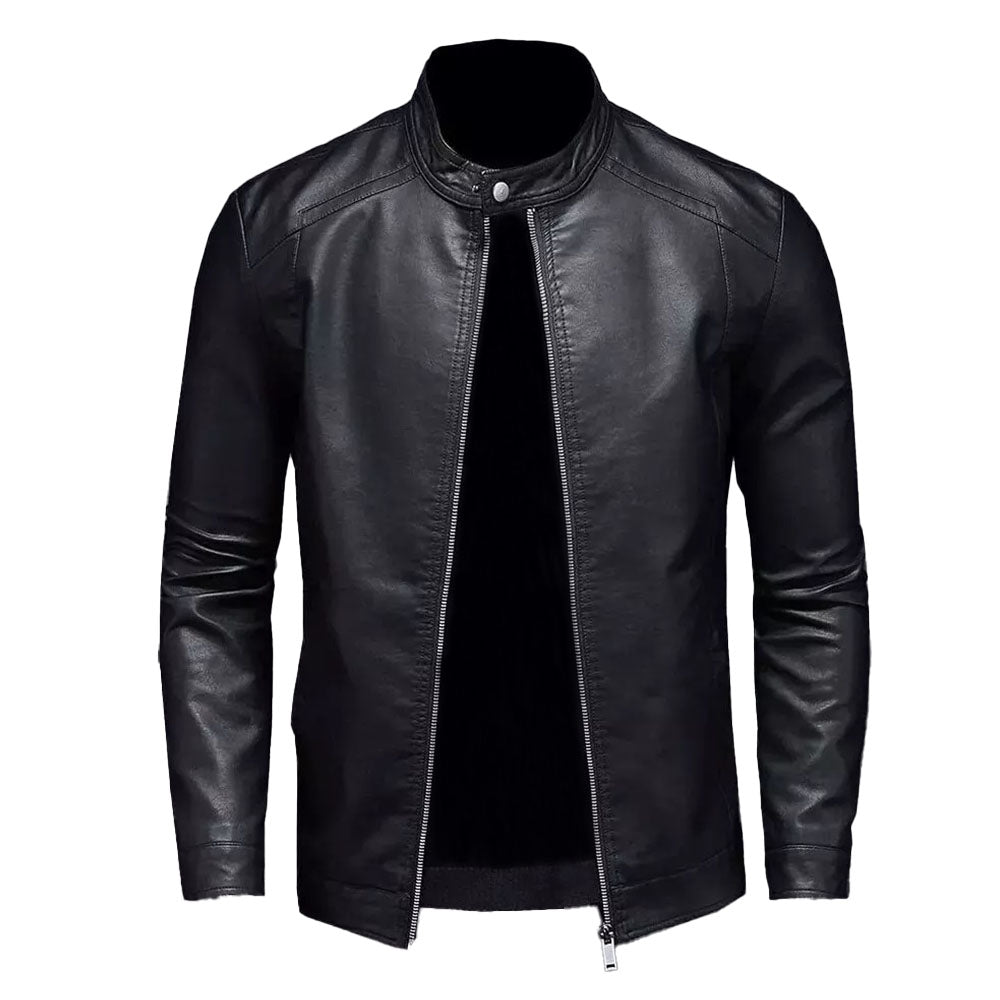 • Stylish Design: Cafe racer jacket with a stand collar and asymmetrical zip closure for a modern, edgy aesthetic.