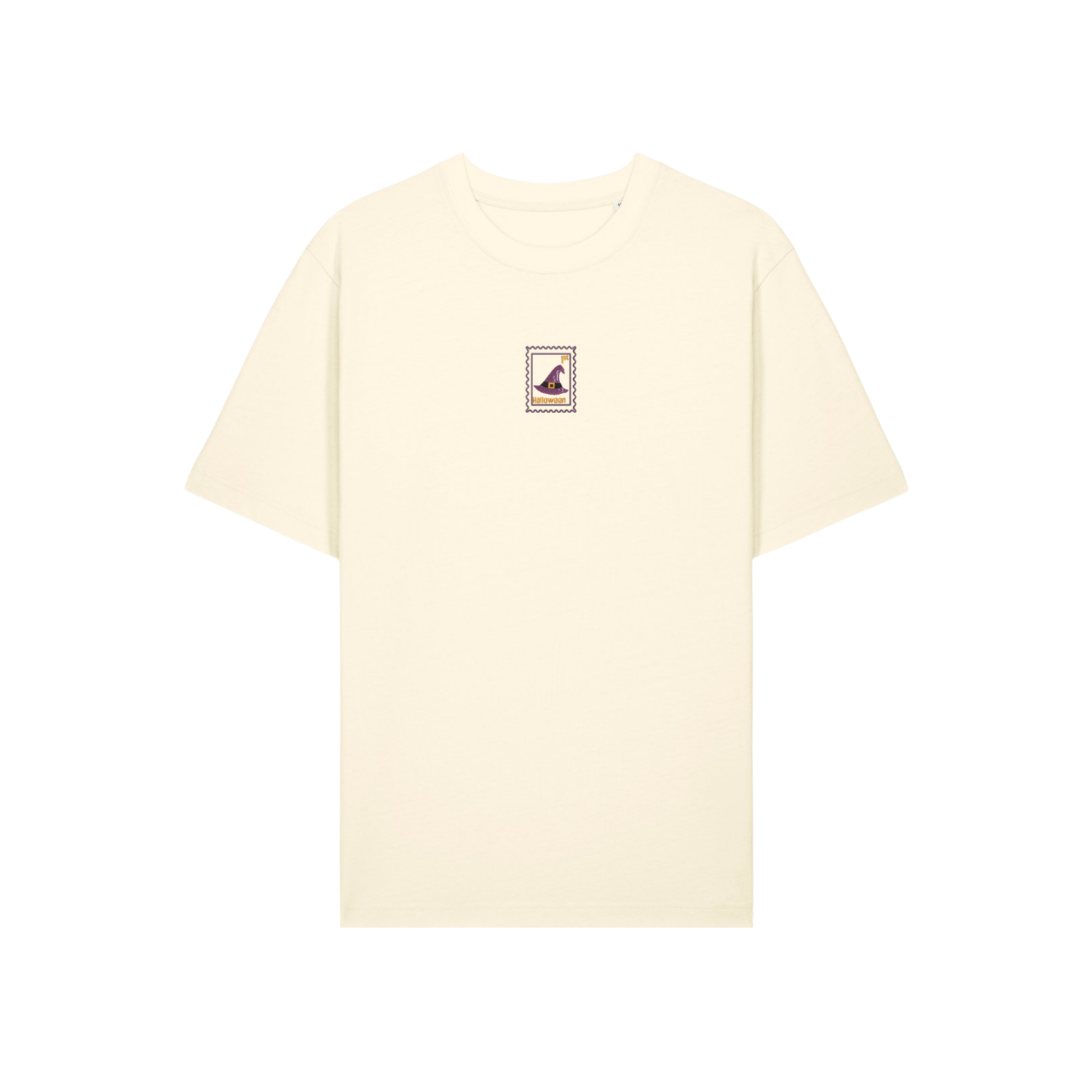 Made from soft, 100% organic open-end cotton and weighing 240 gsm, this t-shirt is heavyweight and perfect for layering under a hoodie or jacket during chilly October nights. Its relaxed unisex fit makes it a versatile piece for everyone – from spooky season lovers to witch fans who want a unique embroidered design instead of a printed graphic.